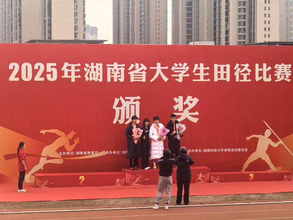 10月29日,在湖南科技大学举办的2025年湖南省大学生田径比赛,安工2404班黄在男子跳高项目中以 1.94 米(第二次跳过)的成绩与第一名持平,最终斩获亚军,为学院赢得荣誉。