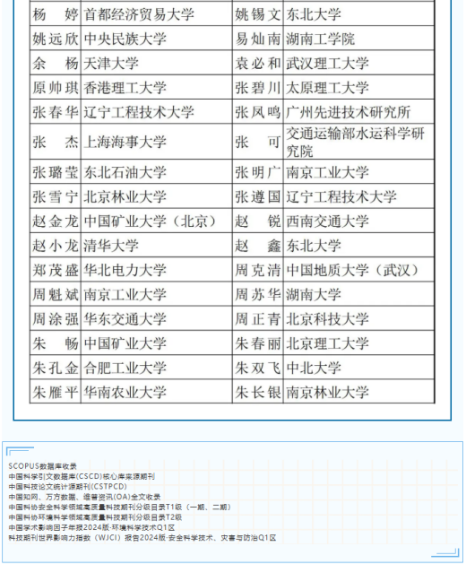 《安全与环境学报》为中国科协高质量科技期刊分级目录安全科学领域 T1级期刊,是 CSCD核心库来源期刊、中文核心期刊、中国科技核心期刊,并被Scopus等数据库收录,入选“中国科技期刊提能拓展计划”。