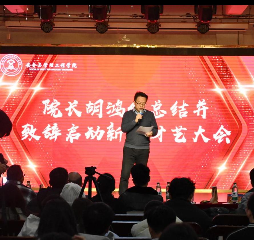 12月29日晚,安全与管理工程学院2025级新生才艺大赛暨元旦晚会在创业园3楼大学生活动中心举办。院长胡鸿,副院长青涛、蒋建军、 李兴旺,学工办主任兼团委书记蒋昂松及全体辅导员应邀出席并担任晚会评委。