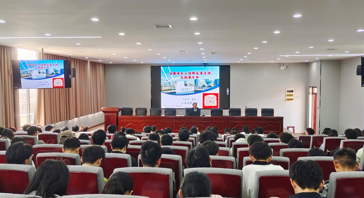 3月28日下午,上海海事大学刘英学教授应邀在安工楼5605报告厅作“注册安全工程师发展历程及政策分析”专题学术报告。报告由安全与管理工程学院院长胡鸿主持,安全工程专业180余名学生到场聆听。
