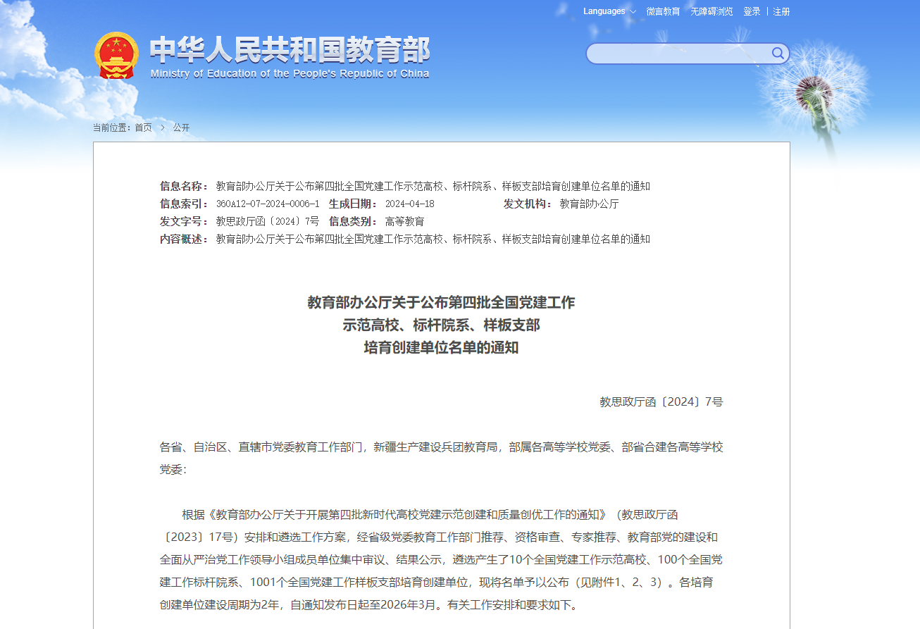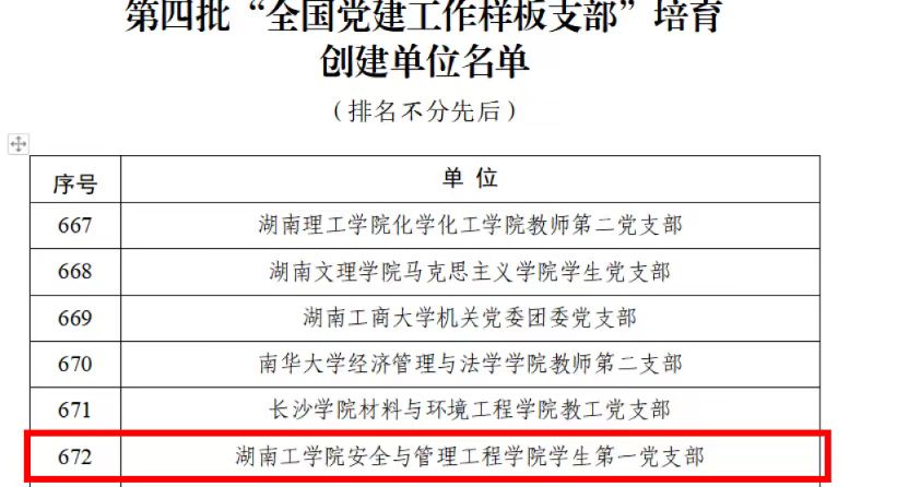 近日,教育部公布了第四批新时代高校党建示范创建和质量创优工作遴选结果,beat365官网安全与管理工程学院学生第一党支部获批“全国党建工作样板支部”培育创建单位称号。