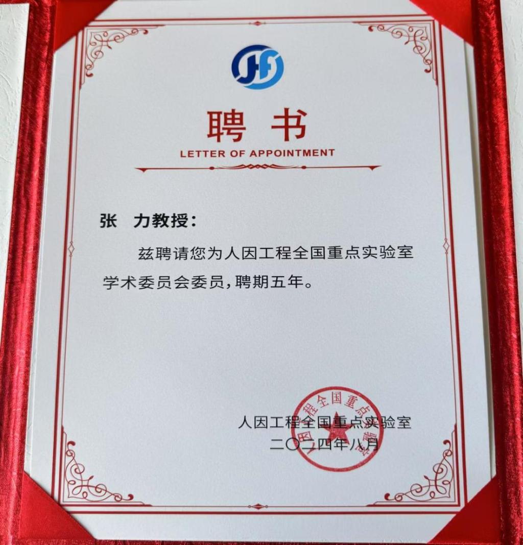 我院张力教授受聘为人因工程全国重点实验室学术委员会委员