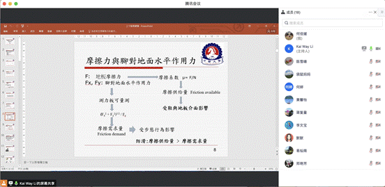 李教授以论文为导线,详细介绍了不同高度和负重条件下,上下楼梯之间的不同负重状态会可能会导致滑倒或其他身体隐患。李教授从摩擦力的角度出发,结合以往研究项目,以丰富的学识和经验为师生们详细介绍了国内外最新研究动态,并就摩擦需求分析中鞋底与地面摩擦力、摩擦力与脚对地面水平力之间的关系,所用负重条件类别以及上下楼梯层数之间的实验设计等内容做了分析和汇报,与参会师生讨论。