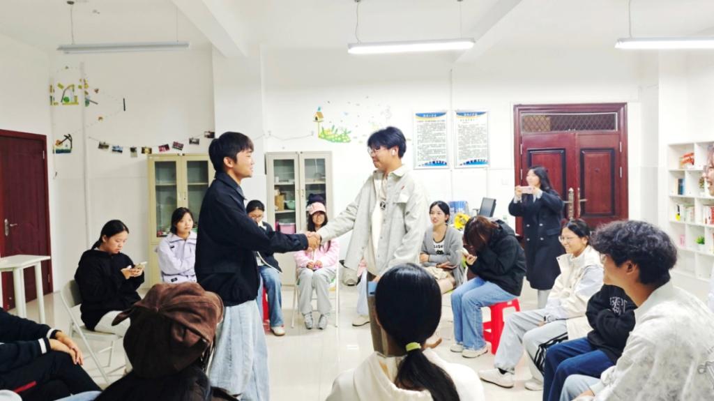 活动以“击鼓传花”游戏破冰。同学们在传递与挑战中互动,既有模仿秀与歌曲合唱等才艺展示,也有家乡话表达心声,现场气氛热烈,迅速拉近了彼此距离。
