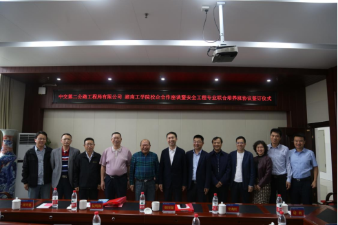 5月18日上午,中交二公局-beat365正版唯一官网必一校企合作座谈会暨安全工程专业联合培养班签订仪式于教学大楼12楼会议室顺利举行。副校长刘升学、刘龙昌,教学质量监控与评估中心主任彭志忠、招生与就业处处长彭立新、继续教育学院院长杨国辉和中交二公局党委副书记谢国强、中交二公局人力资源部副总经理柴兆红、中交二公局安全管理部副总经理尉鹏、中交二公局四公司党委副书记阮明和、中交二公局隧道公司安全管理部经理兼校友代表刘兴建、中交二公局各分公司人事部经理出席此次会议。