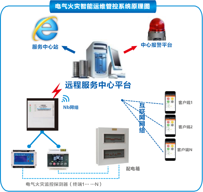 电气火灾智能运维管控系统是在线、24小时动态监测电气火灾隐患的管理工具。它对引起电气火灾等涉电事故的主要因素(线缆温度、电流、剩余电流)进行实时在线监测和统计分析,实时发现电气线路和用电设备存在的安全隐患,并通过系统分析电气设备回路的相关参数,判断故障发生的原因,指导企业开展治理,达到消除潜在的用电安全隐患,实现“防患于未然”的目的。