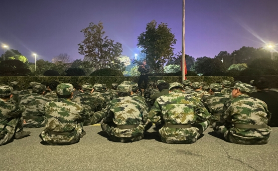 当晚的训练流程以台阶军姿开始,23级预备队员在各班长的带领下,通过统一的保持平衡、稳定的军事训练动作,锻炼了身体协调能力,增强了集体荣誉感。
