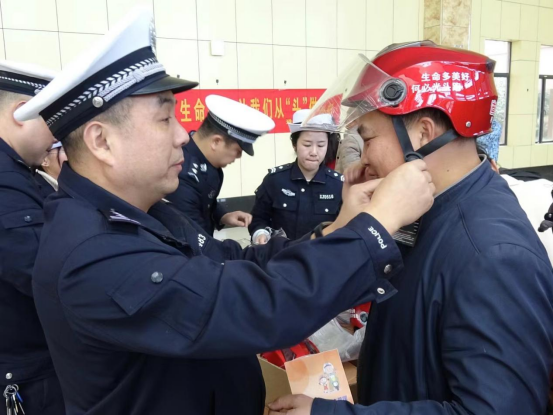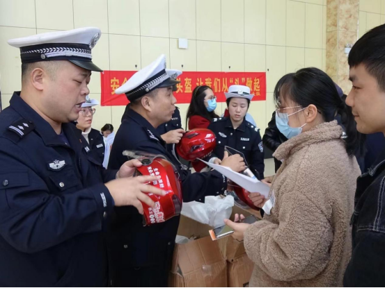 为持续推进衡阳市“戴帽工程”专项行动,增强beat365官网师生的交通安全意识,11月24日下午,学校保卫处联合珠晖区交警大队在beat365官网阳光服务中心开展衡阳市“戴帽工程”进校园宣传活动,副校长黄红卫出席活动现场,珠晖区交警大队教导员李福清、副大队长谭帅带队,带领交警向师生宣传“一盔一带”等交通安全知识,普及交通法律法规基本常识,并免费向教职员工发放电动摩托车骑行安全头盔130余个。