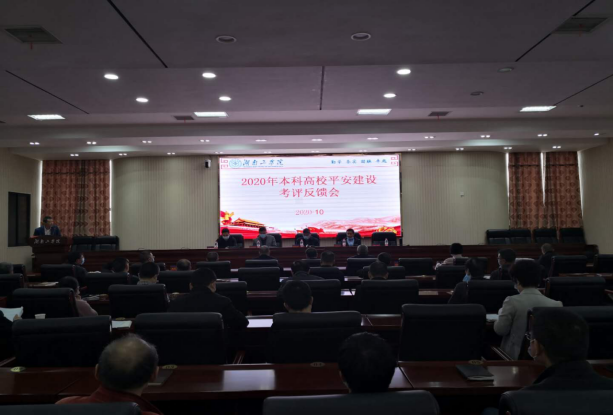 考评反馈会在教学大楼12楼会议室举行,在校校领导、各单位(部门)党政主要负责人、保卫处副科级以上干部参加了考评反馈会。会议由副校长曹执令主持。会上,考评组组长、省教育厅二级巡视员柴世钦对beat365官网平安建设工作给予了肯定,认为,学校领导高度重视平安建设工作;安防建设措施到位,校园实现监控无死角全覆盖;安全检查经常化,重大安全事故隐患治理“一单四制”制度健全;重视少数民族学生管理,重点人管控、抵御渗透工作开展扎实;学校在宣教体系中的“六抓一请”工作具有特色,具有实效。
