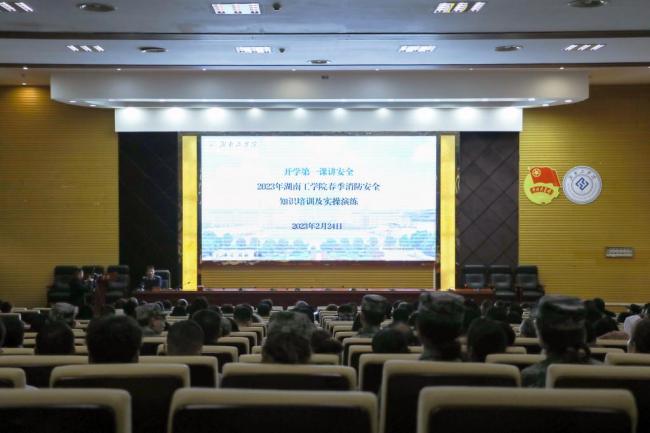 学校邀请衡阳市消防支队防火监督科参谋长陈泽鹏和衡阳市珠晖区消防大队东山消防站来校进行讲座和演练。