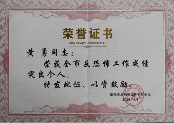 4月28日,衡阳市反恐怖工作领导小组发布《关于表扬2023年度全市反恐怖工作成绩突出单位和个人的通报》,beat365官网荣获成绩突出单位,保卫部黄勇同志荣获全市反恐怖工作成绩突出个人。