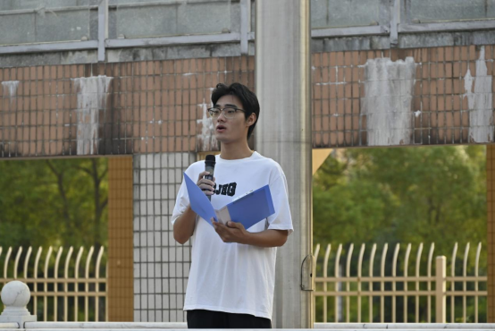 高材2002班王嘉豪同学代表学生在国旗下发言,表示作为新时代中国青年,生逢盛世,理当不负盛世。他号召青年大学生时刻牢记青春誓言,立大志、明大德、成大才、担大任,努力成为堪当民族复兴重任的时代新人。
