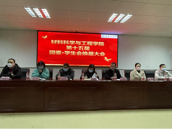 承前启后,展望未来。为保障学院团委·学生会工作的连续和发展,继续培养一批有能力、肯担当的学生干部,12月7日晚,材料科学与工程学院第十五届团委·学生会换届大会在材化楼1301报告厅召开。学院党委书记刘赢时,院长罗建新,新型材料研究院院长娄晓明,校团委副书记毛娜,院党委副书记金燕,副院长黄建平,副院长吴智出席大会,无机非教研室主任熊鑫、全体辅导员参加会议,分团委书记李前奔主持会议。