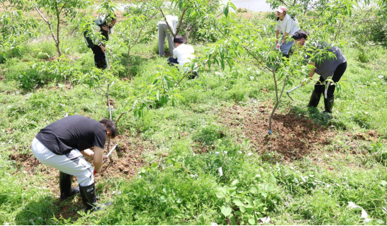 在仪式现场,40余名学生参加了园区除草实践活动。各年级学生在工作人员的带领下,穿上雨鞋,拿起锄头、铲子等劳动工具进入农场,开展劳动实践活动,帮助种植户清理农场内杂草、松土、浇水等等,老师们也与学生一道投入到热火朝天的快乐劳动中。看着一团团被清理的杂草、一片片被整理好树苗、一堆堆刚刚翻松的新土,师生们顾不得脸上的汗珠,在动手实践、出力流汗的过程中接受锻炼、磨炼意志,在团队合作中增进友谊,尽情享受着劳动带来的快乐。