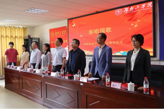 参会人员共同观看由三和精化集团带来的宣传片。徐晓东勉励湖工学子更加奋发向上,希望获奖的同学能时常怀揣一颗感恩之心,不断完善自身,在未来拼搏出一条属于自己的道路。