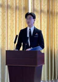 经个人申报、学院初审,共有谭嘉琳、何东福、严敬丹、谢羊羊四名同学入围现场答辩。四位候选人以饱满的热情和充分的准备,通过精心制作的PPT、生动的讲解和丰富的案例,全面阐述了自己在思想、学业、科研、社会实践等方面的优异表现。