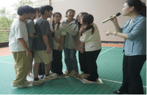 “室外素质团体拓展”—心理健康团体辅导。5月8日,在材化楼3楼平台,心理专家谢玲组织开展了一场大学生团体辅导活动。“你喂我吃,团结友爱”环节,活动要求遮住眼睛给队友递吃香蕉,看哪些队友默契度最高,能顺利吃到美味的香蕉。在“同舟共济,扬帆起航”环节,活动把一张布当成大海的一条船,每组团体成员必须同时站在船上,一个也不能少,并持续将布面积减半。两个活动充分地培养了学生心、脑、手的默契,学生在相互协作中感悟团队的力量,活动现场,气氛热烈,弥漫着欢乐的氛围。