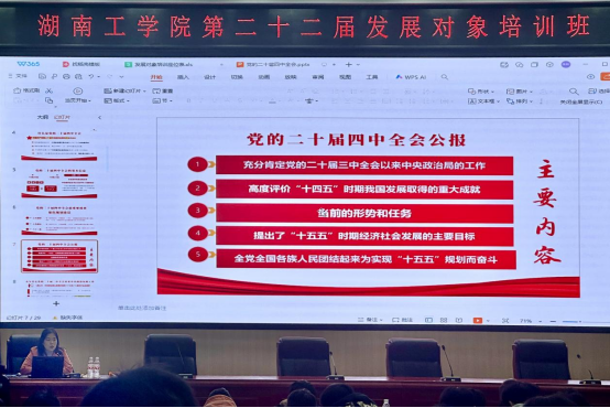 面向发展对象:锚定成长坐标,筑牢信仰之基。11月27日晚,刘赢时在明翰报告厅为学校第二十二期党员发展对象讲授专题党课。她围绕“学习贯彻党的二十届四中全会精神”主题,表示要将理论学习与党性锤炼相结合,将高质量发展要求融入专业学习与研究,在各自专业领域勇攀高峰,以实际行动践行“为党育人、为国育才”的使命,为推进中国式现代化筑牢信仰根基。