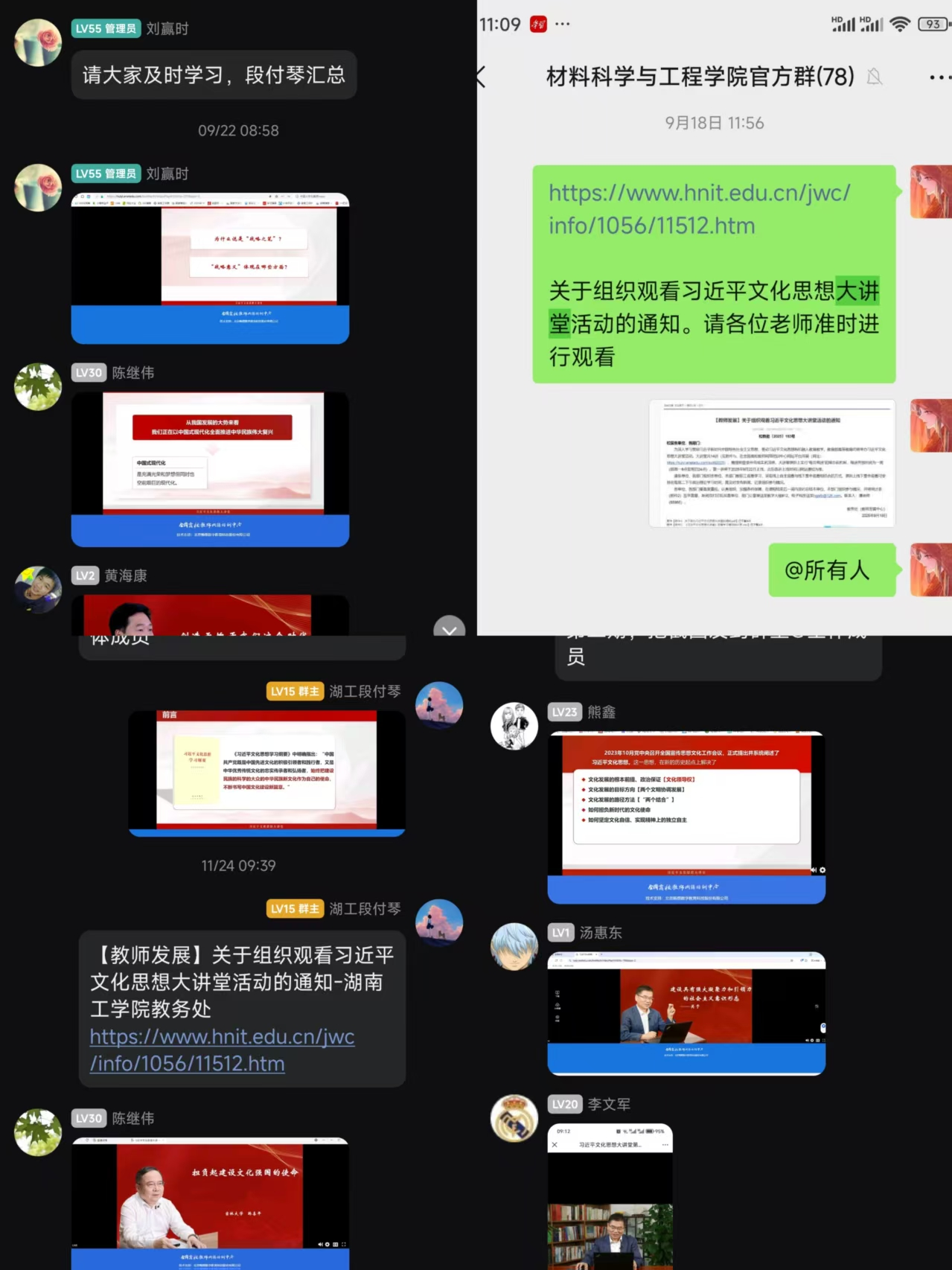 学院通过微信群、QQ群等多种渠道及时发布学习通知、预告与提醒,营造了“人人参与、时时可学” 的浓厚氛围。全院教职工克服教学科研任务繁重的困难,积极响应,参与率达到100%。学院按照“每月两讲”的节奏,灵活利用每周二下午等时段组织线下集中观看与专题研讨,确保学习有计划、有讨论、有收获。