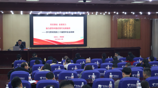 12月30日下午,校党委委员、副校长罗建新在蔡伦报告厅宣讲党的二十届四中全会精神,人事处、招生就业处、材料科学与工程学院、土木与建筑工程学院全体教职员工参加学习。