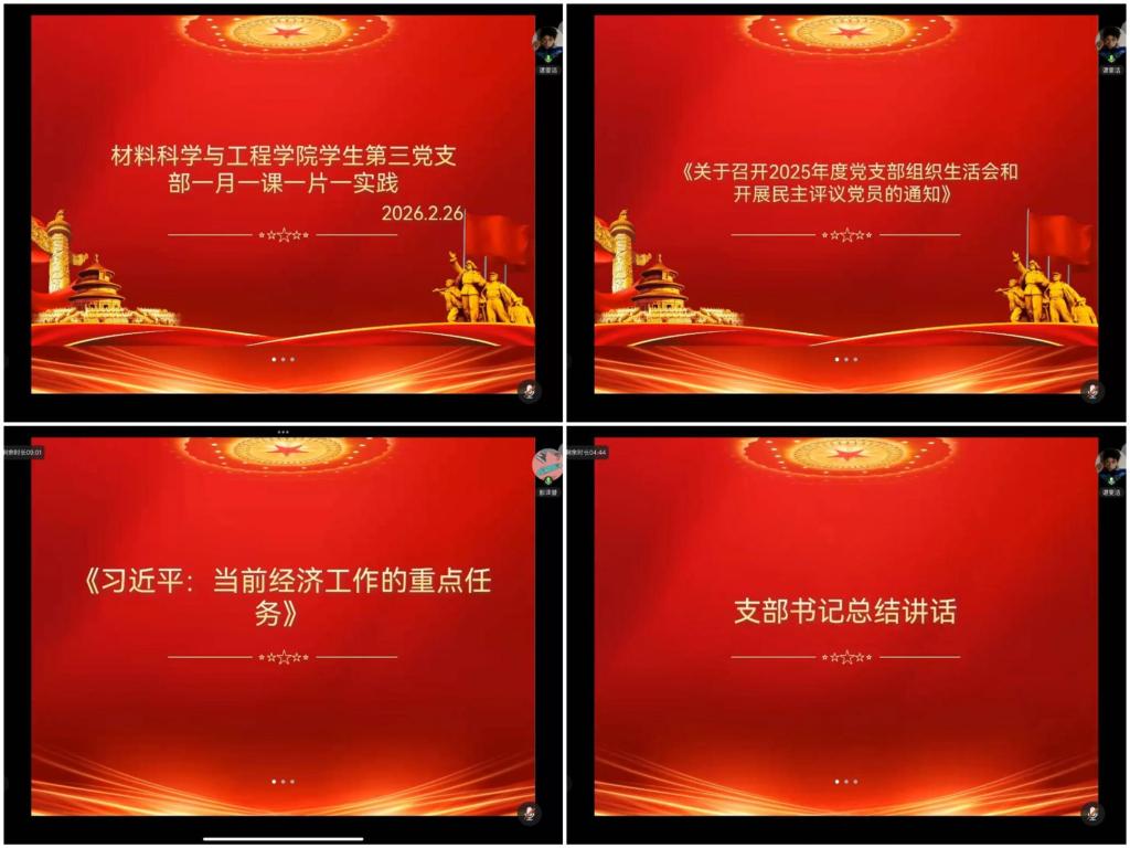 2月26日,材料科学与工程学院学生第三党支部开展二月“一月一课一片一实践”主题党日活动暨组织生活会会前集中学习,全体党员参加,党支部书记谌雯洁主持。