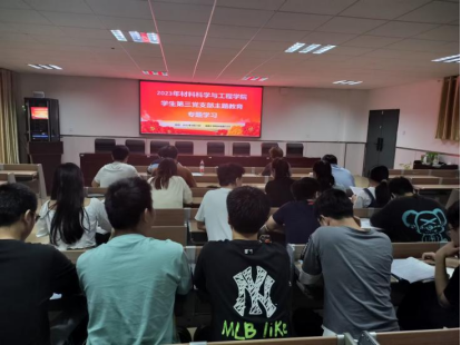 2023年923日,材料科学与工程学院学生第三党支部全体党员在材化楼1301开展学习贯彻习近平新时代中国特色社会主义思想主题教育专题组织生活会前学习暨九月“一月一课一片一实践”主题党日活动