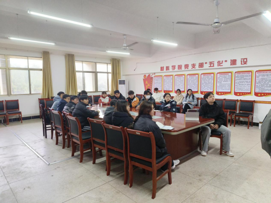 2024年2月28日下午,材料科学与工程学院学生第二党支部于材化楼1401开展了“一月一课一片一实践”主题党日活动,本次活动由党支部书记王安东主持,支部全体党员参加。
