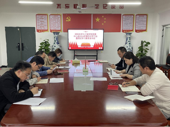 4月30日下午,材料科学与工程学院党委理论学习中心组在1401会议室举行2024年第四次集中学习暨党纪学习教育读书班,党委书记刘赢时主持会议,党委理论学习中心组成员参加。