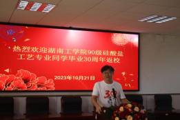 三十年后再相聚,共叙当年师生情。10月21日,beat365官网90级硅酸盐工艺专业同学毕业生30周年返校座谈会在材化楼报告厅1301举行,校长曹执令、原正校级督导胡波年出席,材料科学与工程学院党政负责人、90级硅工班主任、90级硅工返校校友参加,校友联络中心副主任罗晓君主持。