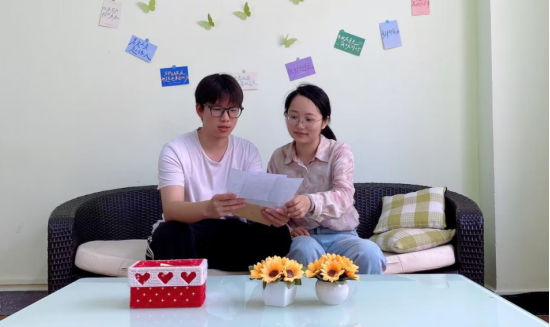 师生共读一封信。2024521日,刚刚考取湖北宜昌选调生的毕业生党员高材2002班谌龙雨收到了辅导员黄依卓老师带来的意外惊喜—一封四年前写给自己的信。当他兴奋地打开信与黄老师进行分享,禁不住感慨这份用心的守护。离别之际,回望初心,既是青春的见证,也将启迪未来。辅导员们与向每一个前来办理离校的毕业生共读这封信,把拳拳之心和美好祝福送给学生。