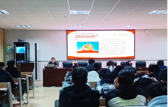 11月30日晚,材料科学与工程学院在材化楼1301开展《中国式现代化面对面》宣讲,学院党委书记刘赢时主讲,专职组织员曹丽慧、分团委书记李前奔及100余2020级学生聆听讲座。