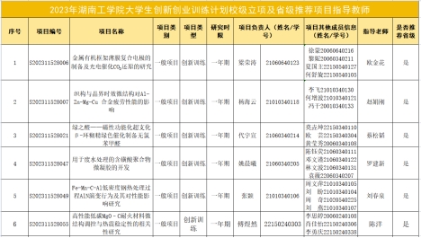 beat365正版唯一官网必一2023年湖南省大学生创新创业计划一般项目名单
