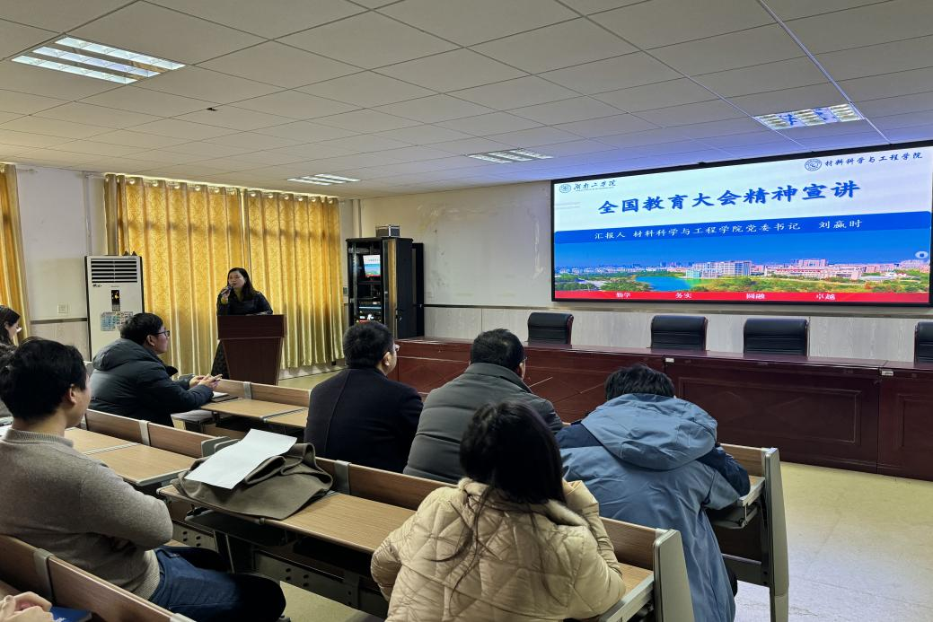 会上党委书记刘赢时专题宣讲了全国全省教育大会的精神。