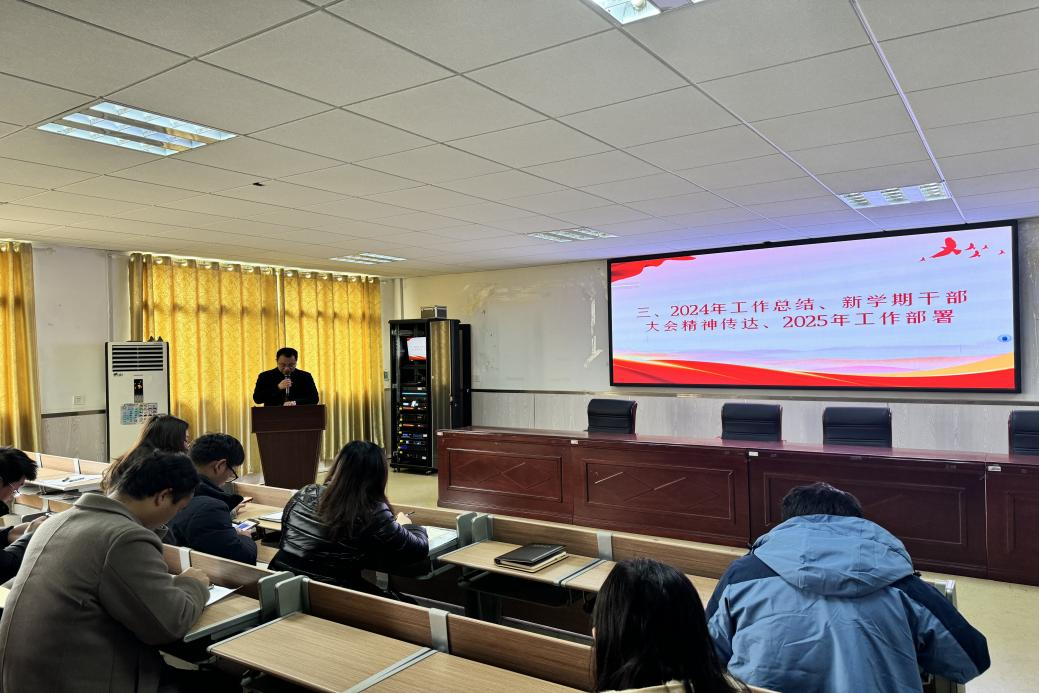 院长罗建新传达了学校新学期干部大会精神,并代表学院领导班子做了2024年工作总结及2025年工作部署。罗建新首先肯定了全体教职工在过去一年中所取得的优异成绩,并指出了存在的不足和面临的挑战。针对新学期的工作,他特别强调要瞄定申硕工作任务和目标,攻坚克难,以优异的成绩交出满意的“答卷”。同时,他也强调了全体教职工要团结一心,共同为学院的繁荣发展贡献力量。