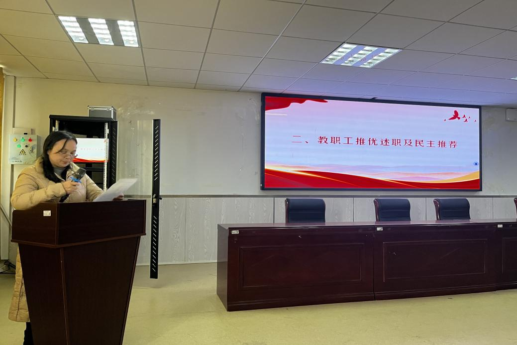 教职工推优述职及民主推荐环节。15名教职工依次上台进行述职,分享了过去一年的工作成果和经验教训。在此基础上,全体教职工通过民主投票的方式,推选出了在教育教学、科研创新、管理等方面表现突出的12名优秀教师参评校级优秀,为学院的进一步发展树立了榜样。