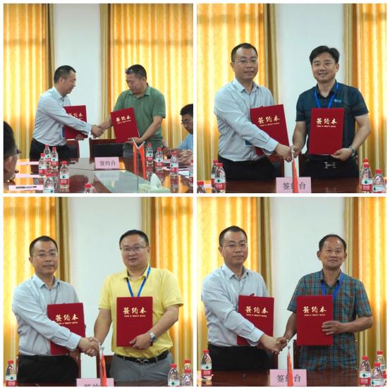 大会现场,材料科学与工程学院分别与广州圣雪颜颜生物科技有限公司、佛山市新明新材料科技有限公司签订了产学研战略合作协议,与佛山市精卓陶瓷设计有限公司签订了就业基地合作协议,与衡阳县狮子岭生态农业发展有限公司签订了劳动实习基地合作协议。