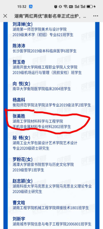 青春拥有者,应燃起风华。张美胜同学牢记习近平总书记的深情寄语,进一步坚定理想信念,怀揣奋斗精神,练就过硬本领,积极拥抱新时代,谱写精彩人生篇章。张美胜同学的事迹体现了湖工学子奋发向上的青春精神,彰显了勇毅前行的青春担当,交出了一份优异的青春答卷。(共青团材料科学与工程学院委员会)