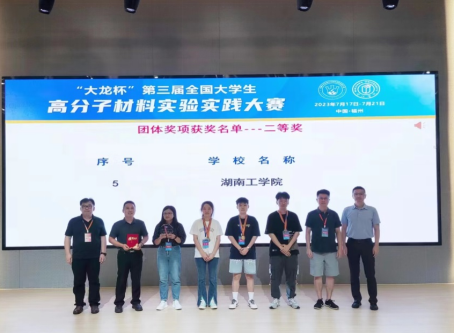 7月18日,由教育部高等学校材料类教指委指导的“大龙杯”第三届全国大学生高分子材料实验实践大赛在闽江学院举行,哈尔滨工业大学、西安交通大学等全国59所高校300余名师生参赛。beat365官网材料科学与工程学院肖成龙、颜娇娇、蔡松韬3位指导老师率队首次参赛,获得团队二等奖,团体总分全国排名第六。唐珍之同学获得个人一等奖1项,吴昊阳、周薇2位同学获得个人二等奖2项。
