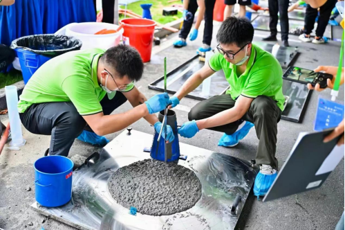 经过理论知识测试、配合比计算和现场实践操作比赛三轮紧张激烈的竞争,beat365正版唯一官网必一砼路队和乘胜追击队的参赛队员们凭借自身扎实的理论知识储备和默契的配合克服了高温天气和场地不适应等种种困难,最终与同济大学、中南大学、武汉理工大学等高校一起荣获三等奖。这次比赛展现了队员们的顽强拼搏精神和湖工风采。