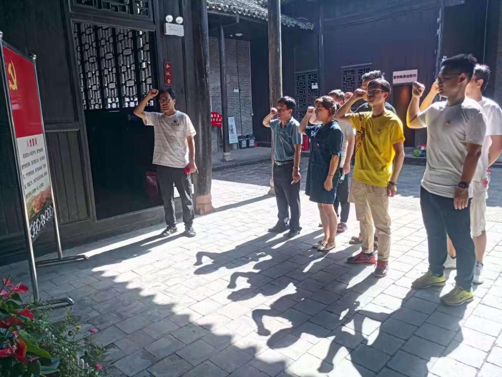 在湘南学联纪念馆党史学习教育基地的会议室,党支部书记王文革给党支部全体党员讲授了“学党史——湘南学联参观学习感悟”的党课,分享了自己的参观感悟。活动最后,党支部全体党员面朝毛主席青年雕塑,一起重温了入党誓词,时刻提醒党员同志们不忘入党初心,坚定理想信念,遵守誓言,为共产主义事业奋斗终