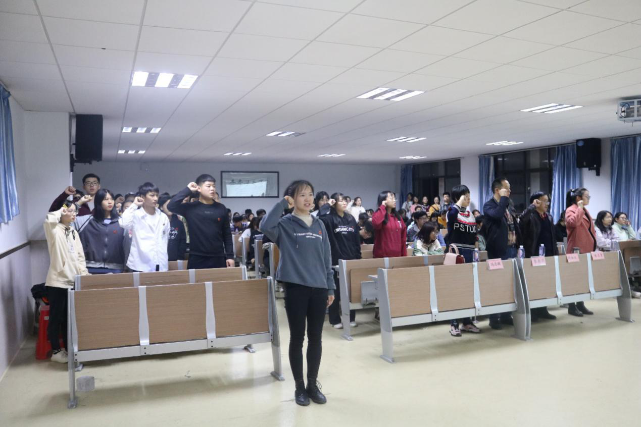 为贯彻落实全面从严治党的要求,切实做好党员发展工作,11月6日,材料与化学工程学院在1301教室举行预备党员入党宣誓暨第十二期积极分子培训班开班仪式。出席本次大会的有材化学院院党委书记刘湘欣、党委副书记李来丙、材化学院组织员、院团委书记陈凌霄、19级辅导员冯志敏、58位预备党员以及第十二期积极分子参训人员。