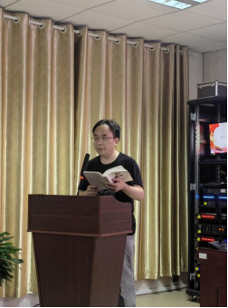 2名教师代表分别推荐了《习近平谈治国理政》第三卷中的有关青年思想教育和党史教育的篇章。金燕分享了习近平总书记在纪念五四运动100周年大会讲话内容节选,她饱含深情地分享“新时代中国青年要听党话、跟党走,胸怀忧国忧民之心、爱国爱民之情,不断奉献祖国、奉献人民,以一生的真情投入、一辈子的顽强奋斗来体现爱国主义情怀”,声音高亢有力,振聋发聩。李前奔分享了习近平总书记在瞻仰上海中共一大会址和浙江嘉兴南湖红船时的讲话要点,详细介绍了这次讲话的时代背景,分享了自身体会,“走得再远都不能忘记来时的路”,引起了在场人员的共鸣,博得阵阵热烈掌声。