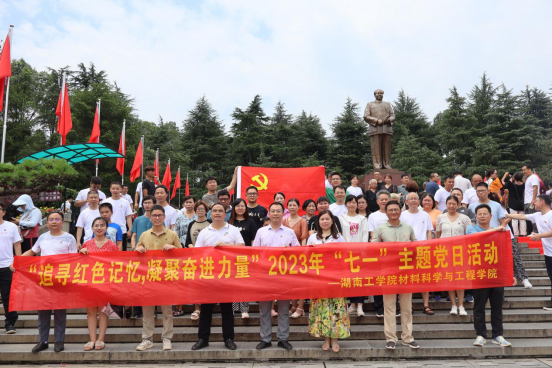 为贯彻落实党的二十大精神,庆祝中国共产党成立102周年,引导广大教师党员不忘革命先辈的牺牲奉献,更加清醒地认识到肩负的责任和使命,更加坚定在岗位上履职尽责的信心和决心,2023年7月1日,材料科学与工程学院党委组织全院教师党员前往毛泽东故里韶山和刘少奇故居花明楼开展“追寻红色记忆,凝聚奋进力量”主题党日活动。