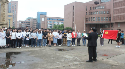 刘湘欣带领全体毕业生党员重温入党誓词,铮铮誓言传达出党员们的共产主义坚定信仰和中国特色社会主义的强大信心。