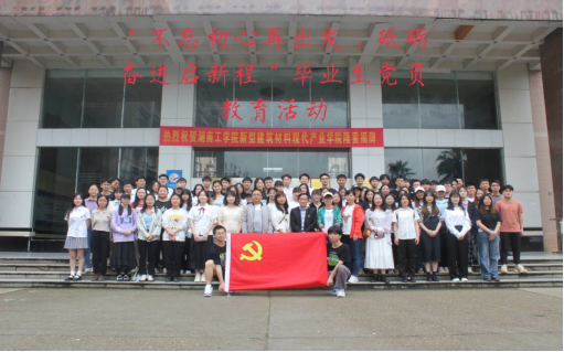 刘湘欣上了一堂短小精彩的党课。他希望毕业生党员不忘初心,始终牢记党旗下的誓言;坚持不懈,努力学习,不断提升完善自己;心怀感恩,确保安全文明离校;做永远的湖工人,常回来看看。