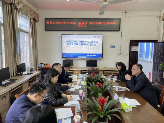 随后,应南华大学招生就业处盛情邀请,党委书记刘赢时、院长罗建新、副院长黄建平、就业专干李前奔及毕业班辅导员冯志敏、王安东一同出席南华大学就业指导中心座谈会,双方在友好气氛中就毕业生就业服务工作作了深入交流。