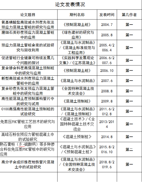 10、2013年针对宁波市象山某工程特定的地质与工程状况,需要设计更高强度高性能的混凝土预制桩型,我公司专门成立了C100高强高性能混凝土预制桩的研究项目,并作为该项目的第一负责人,并在滨海新基地试制成功,可完全满足浙江某特定区域对高强高性能混凝土预制桩的强度等级设计要求。该项目获得2013年度中国土木工程学会混凝土质量专业委员会年会优秀论文奖