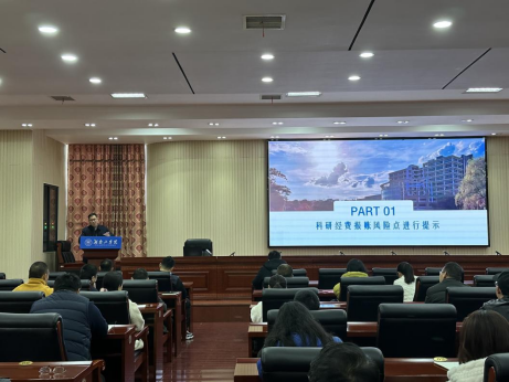 会上,赵少平从科研经费使用过程中常见的风险点、科研经费违规使用的典型案例、科研经费使用不得触碰的红线以及《湖南省科研项目“包干制”试点经费使用“负面清单”》等四个方面强调各科研项目负责人要增强责任意识,严格按政策规定,确保规范、安全使用科研经费。