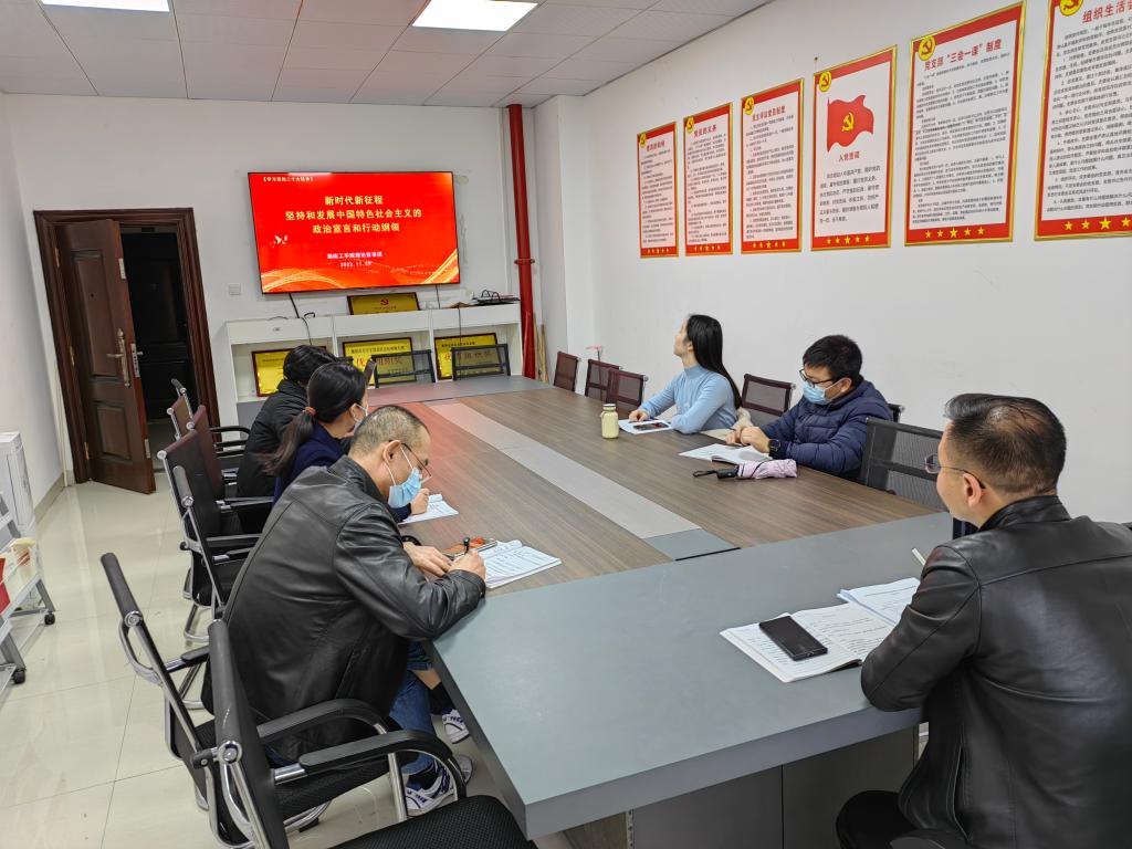 为深入学习宣传贯彻党的二十大精神,10月29日下午,机关第十二党支部召开学习党的二十大精神宣讲会,支部书记贺令亚宣讲解读党的二十大精神,支部全体老师参加。