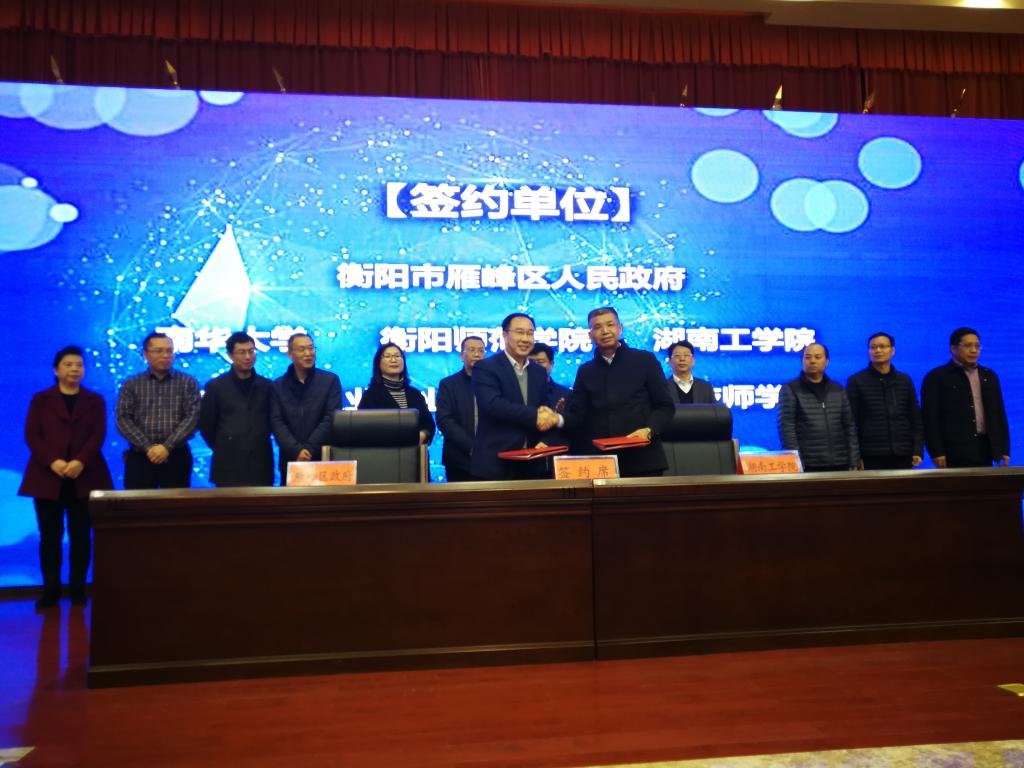 12月5日上午,雁峰区政、企、校产学研框架协议签约暨创新创业大赛颁奖仪式在雁峰区人民政府多功能会议室举行。南华大学、衡阳师范学院、beat365正版唯一官网必一等5所高校受邀出席。beat365官网副校长刘俊学一行出席了相关活动。